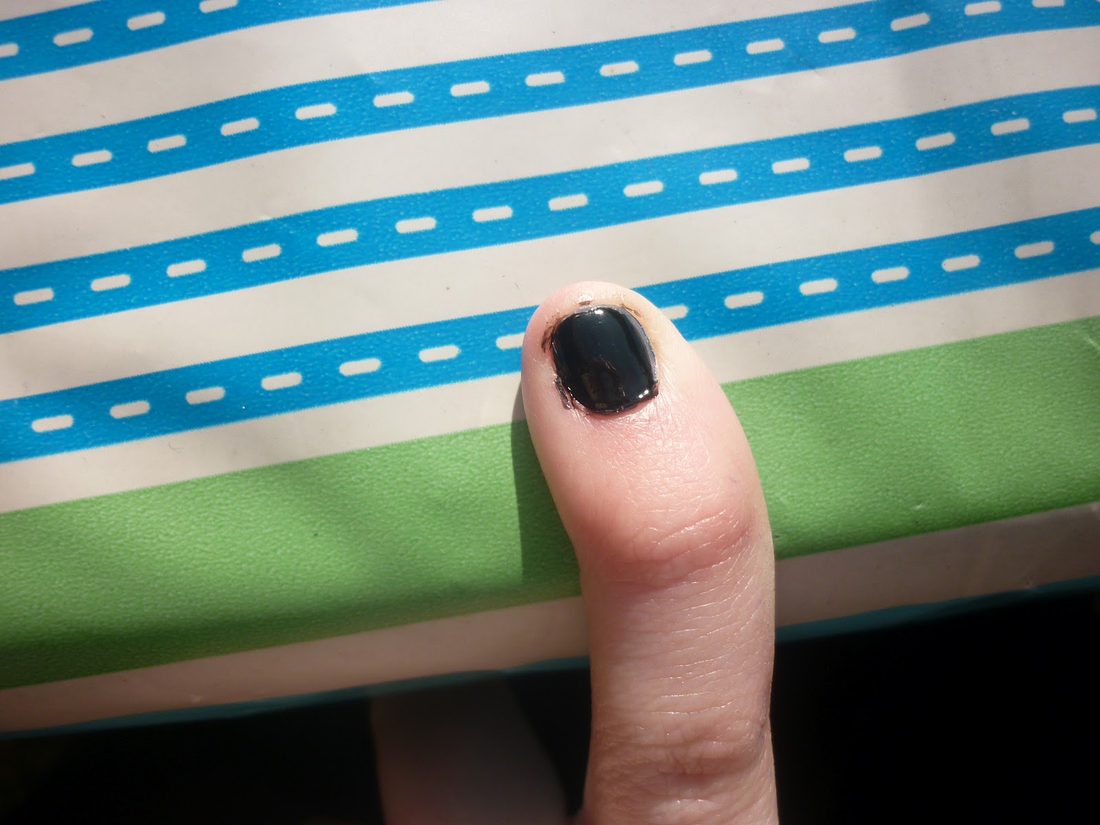 De kleur is goed zwart, je hebt maar een laagje nodig om de kleur goed dekkend te maken. De kleur is ook erg mat dus geen glitters of andere 'fijne' verrassingen.